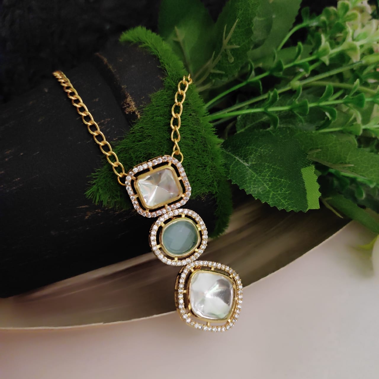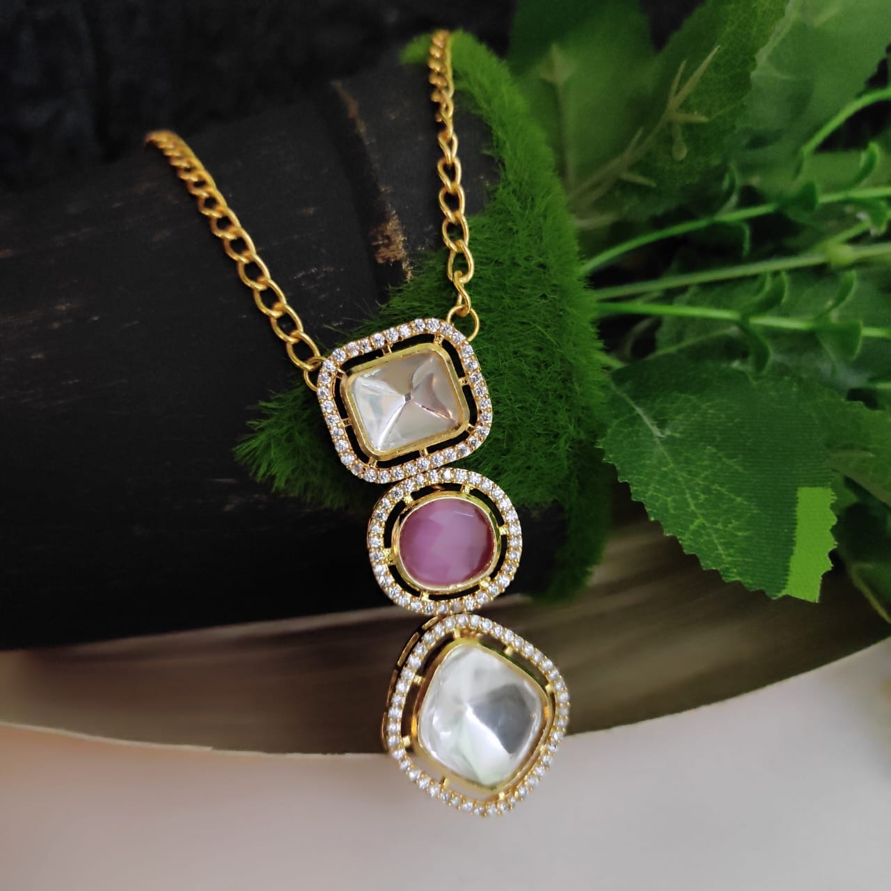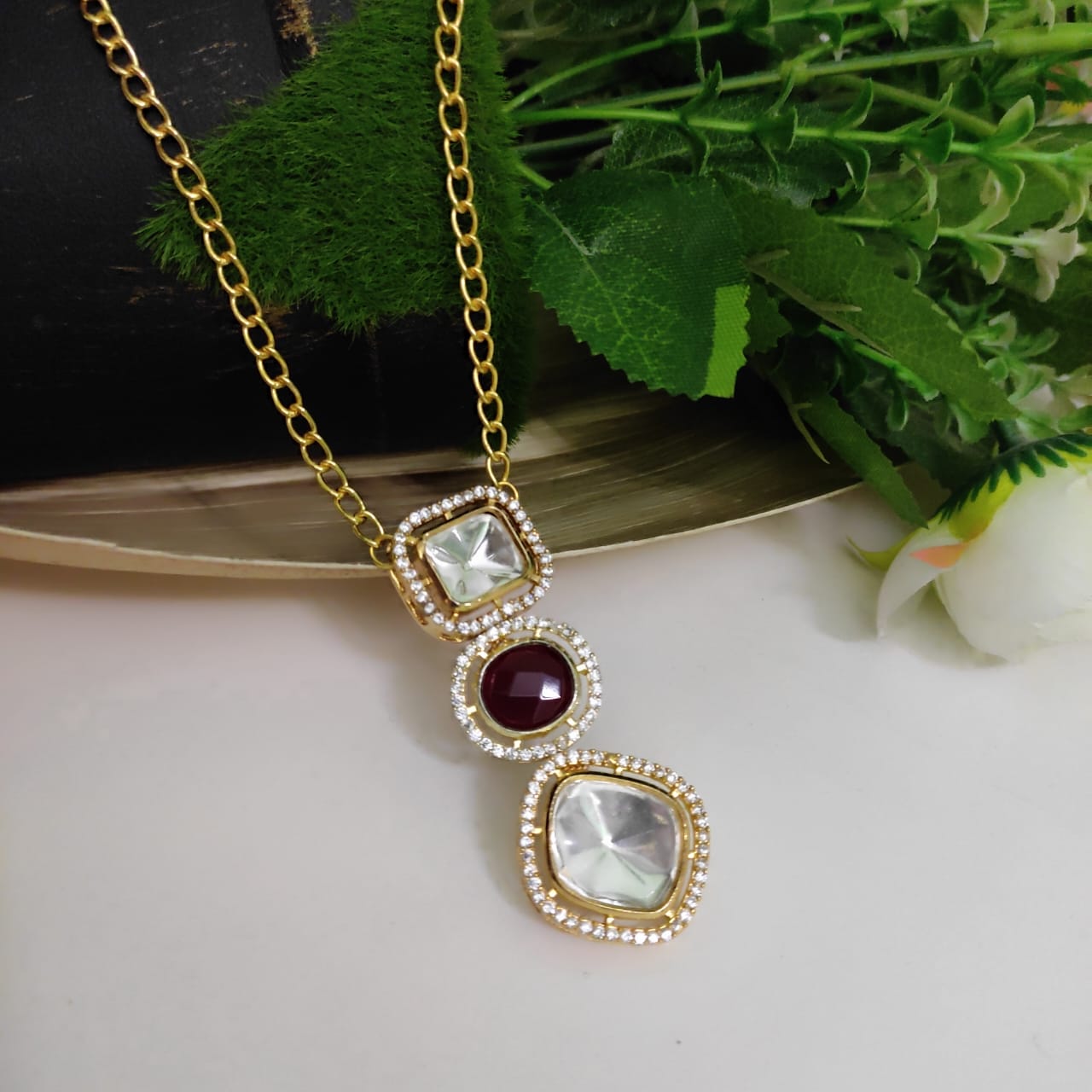 NCP31-AD stone pendant with Chain in Gold plating features kundan stone and monalisa stone which enhance the beauty of the pendant.
