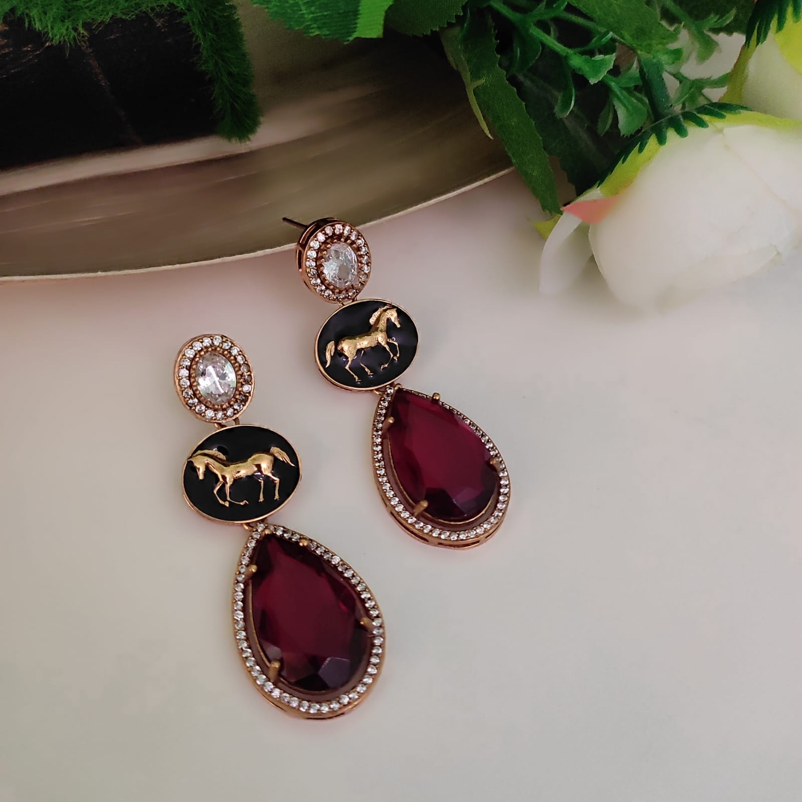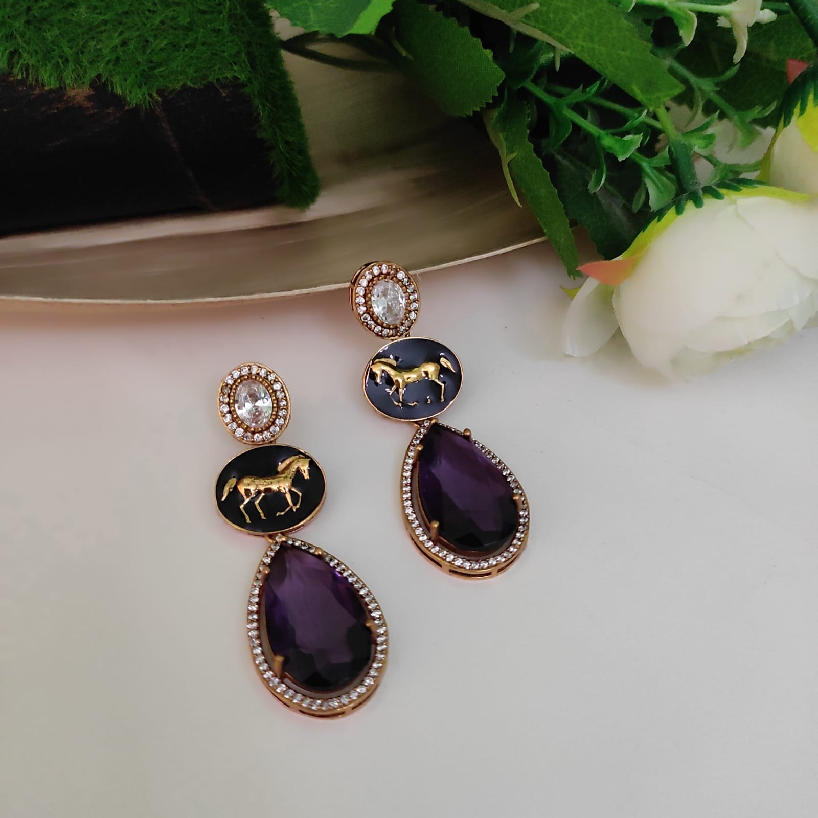 This Earring is highlighted by color stone in a copper plating and inspired by Sabyasachi Collection. The AD stone in this earring resemble the brilliance and sparkle of real diamonds.