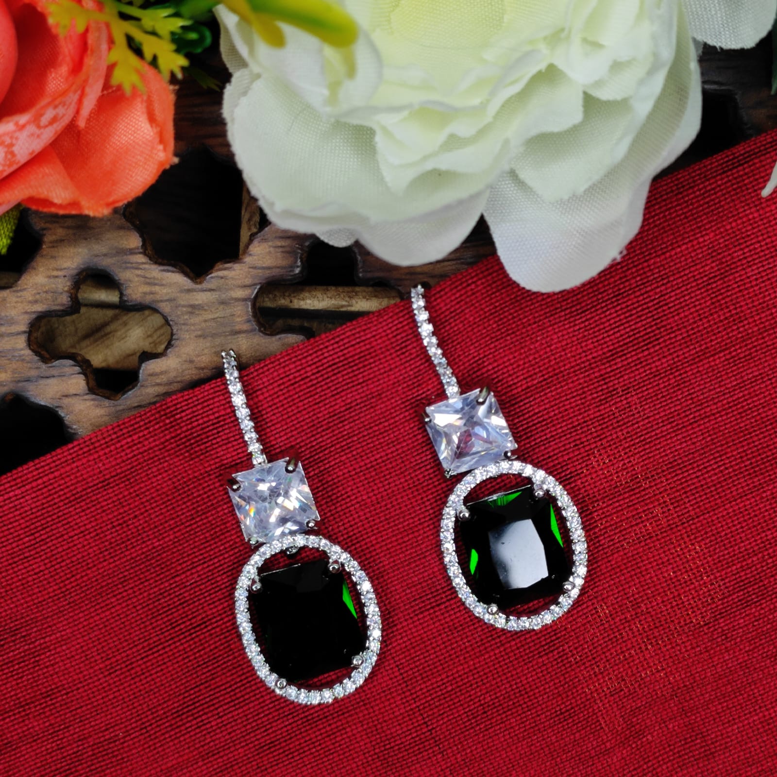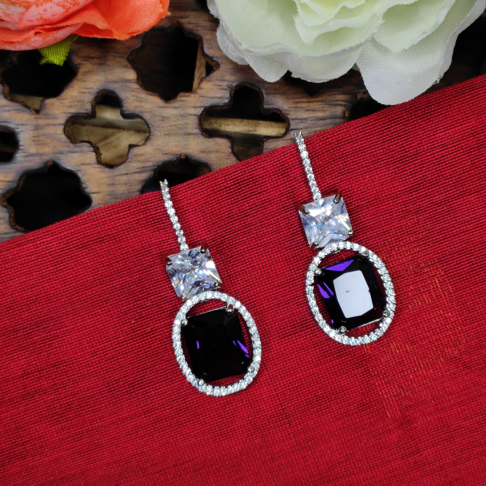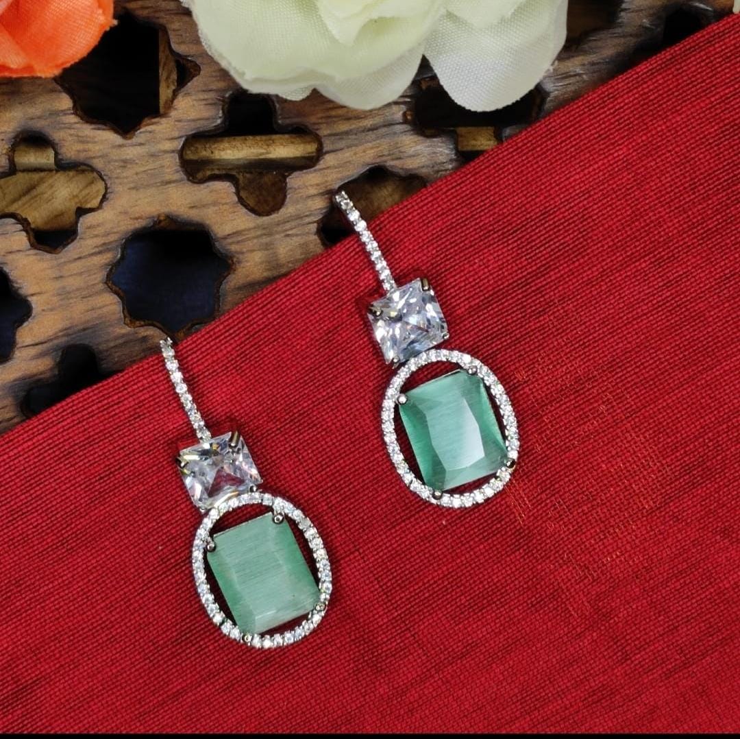 NCE3 Nitara AD Stone Earring with Silver Plating. | Multi Colors
